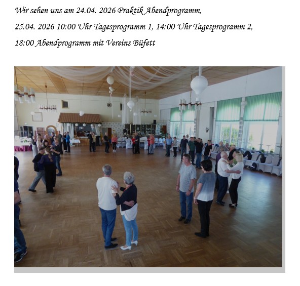 Leider steht und der Saal in diesem Jahr nur am Freitag den 24.04. 2026 und am Samstag den 25.04. 2026 zur Verfügung,